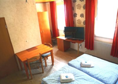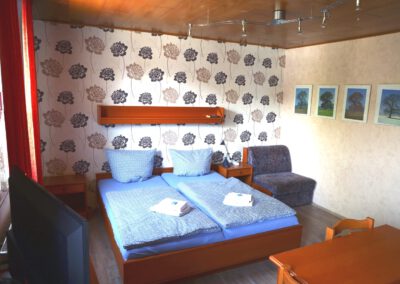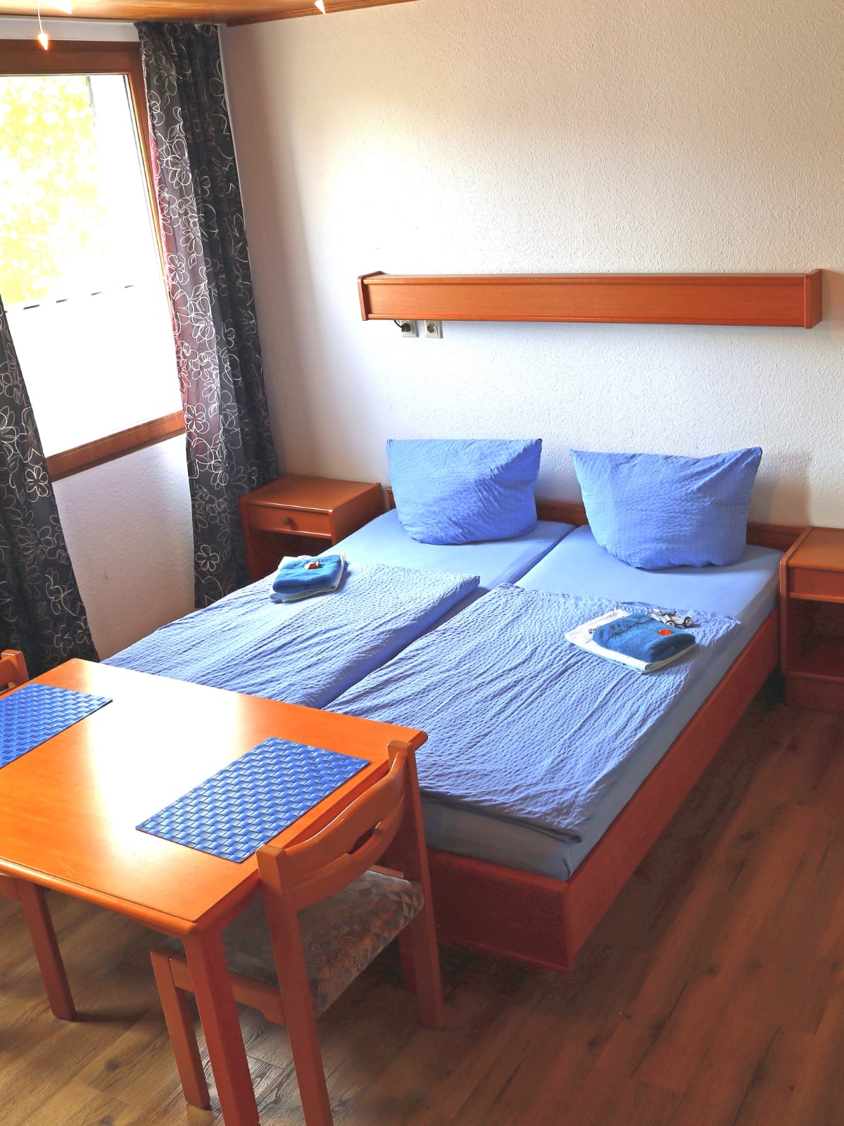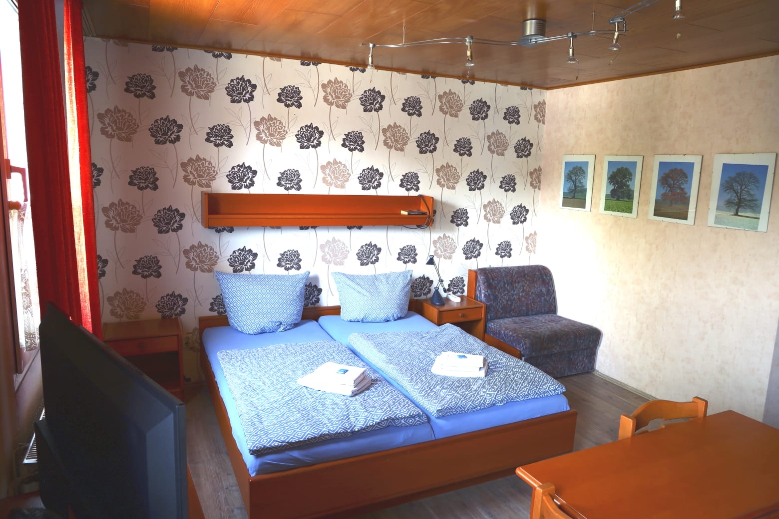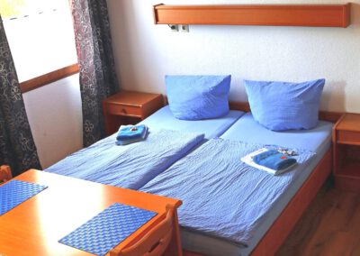 Unsere gemütlichen Zimmer sind alle mit Dusche/WC, Satelliten-TV und Schreibtisch ausgestattet. In die oberen Etagen unseres Gästehauses gelangen Sie bequem mit dem Fahrstuhl.